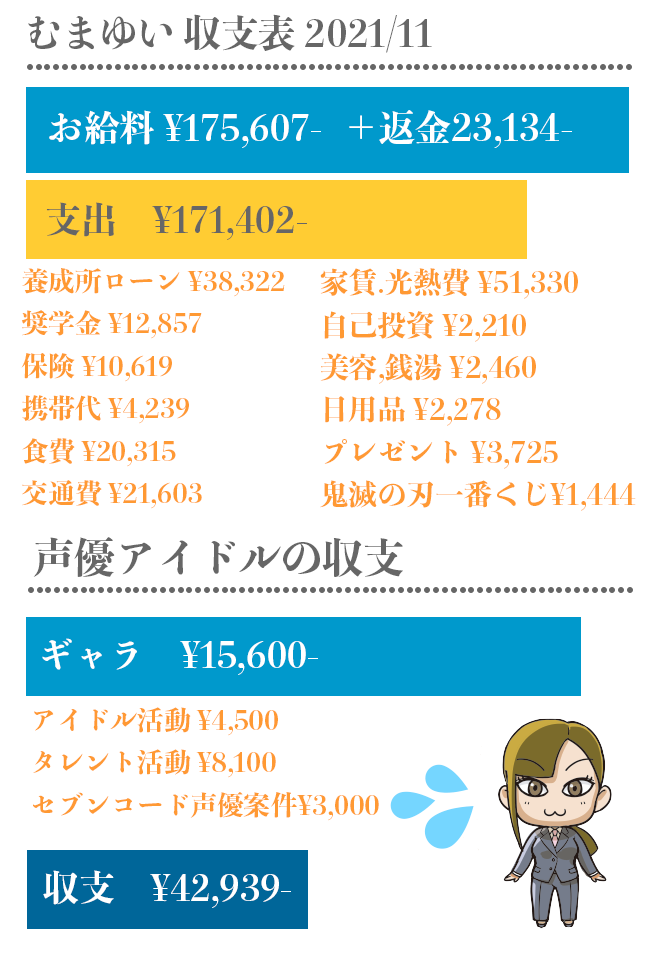 地上波アニメ主演声優への道🌟〜むまゆいの収支報告(ぶっちゃけ家計簿)〜 2021年10月の収支進捗報告!