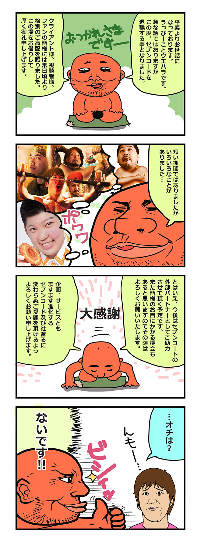 私事で大変恐縮ですが、一身上の都合により、9月末を持ちましてセブンコードを退職し、今後は外部パートナーとしてご協力させて頂くことになりました。クライアント様、視聴者様、携わっていただいた皆様、今まで数々のご助力、応援を心より感謝致します。