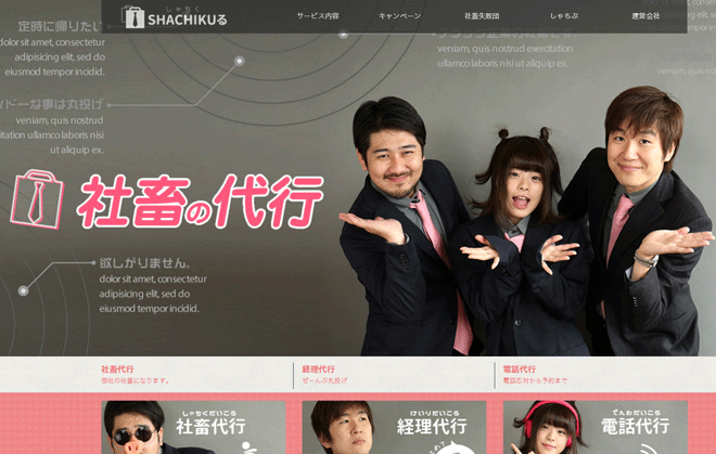 「WEB事業」「電話代行事業」に加え「経理代行」サービスを追加し、代行をメインにしたサイトです。