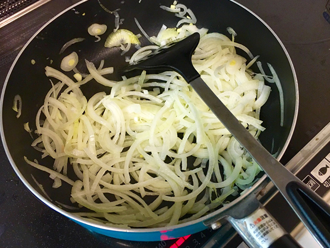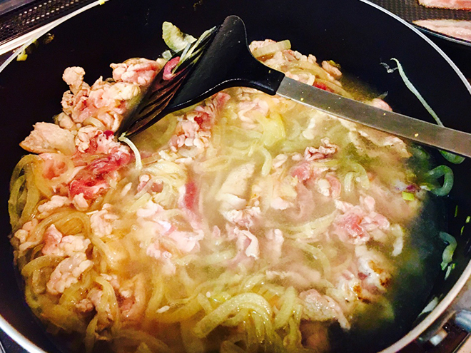 3.本当は牛肉を入れるけど私は豚肉のほうが好きなので豚肉いれます。