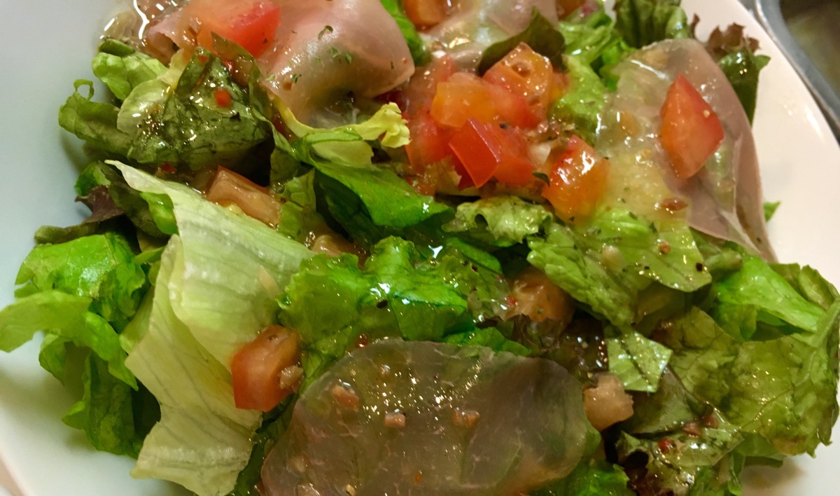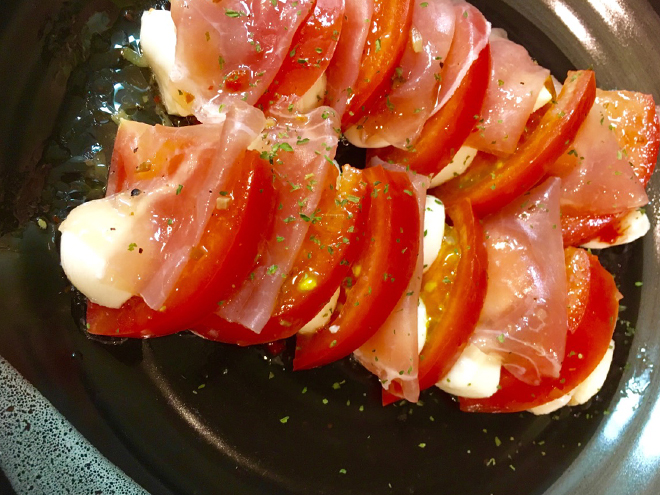 2.カプレーゼで残った生ハムとトマトをのせたら完成です!