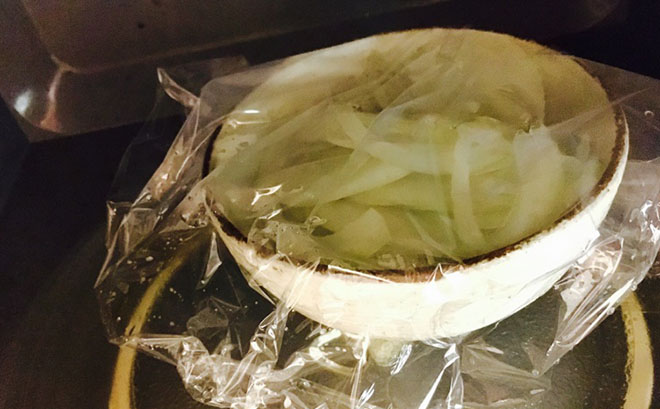 2.玉ねぎをレンジで5.6分チンします。(時短)