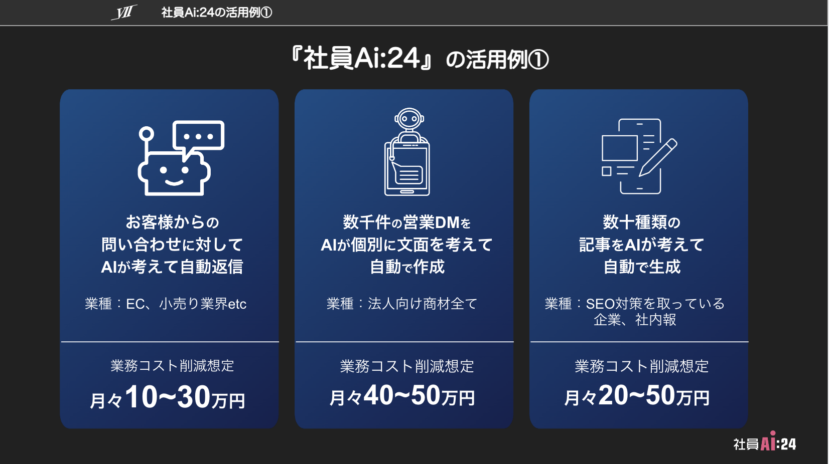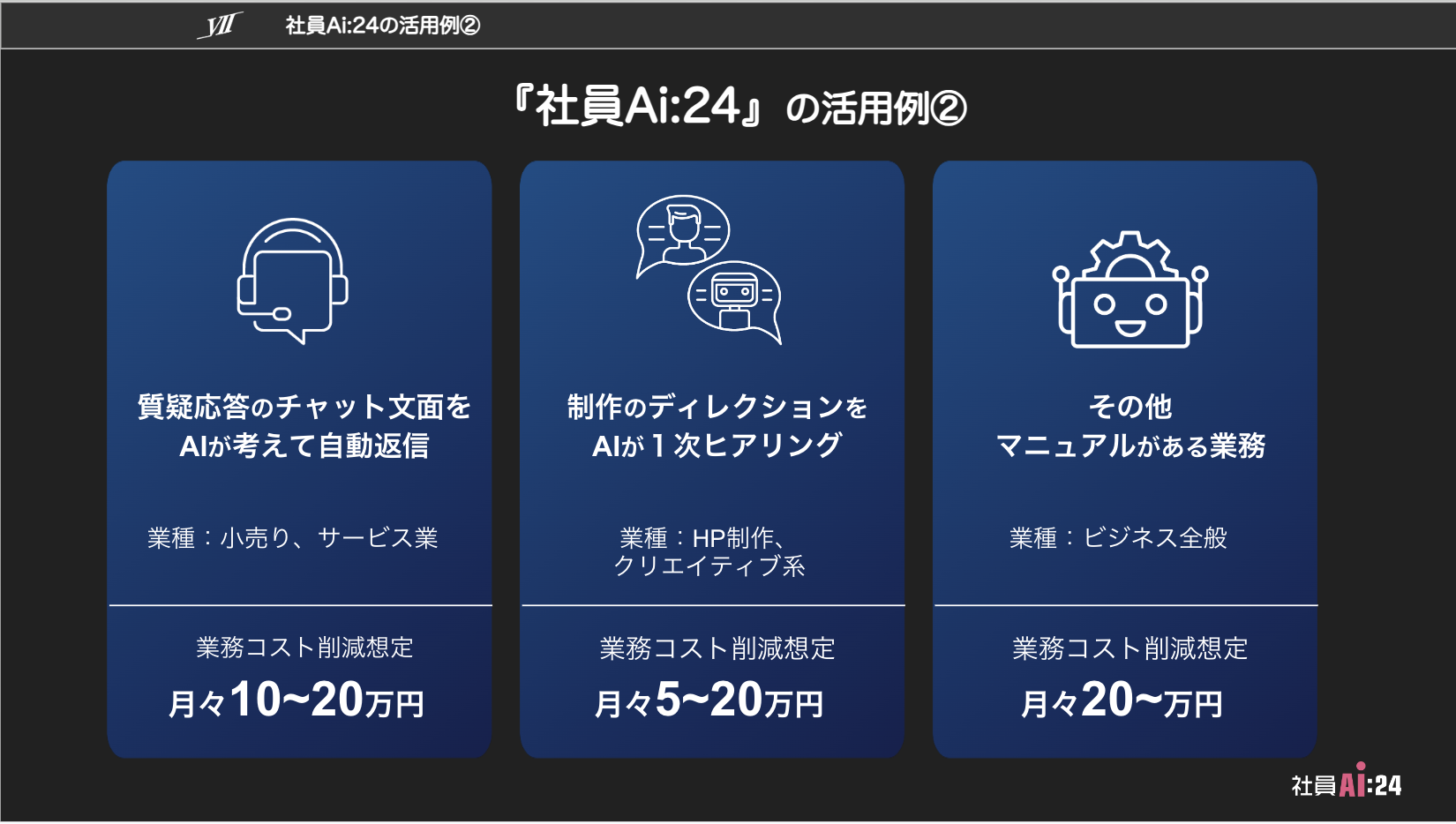 (例)AIブログ作成ツール、AI受付秘書、AI打ち合わせツールなど
