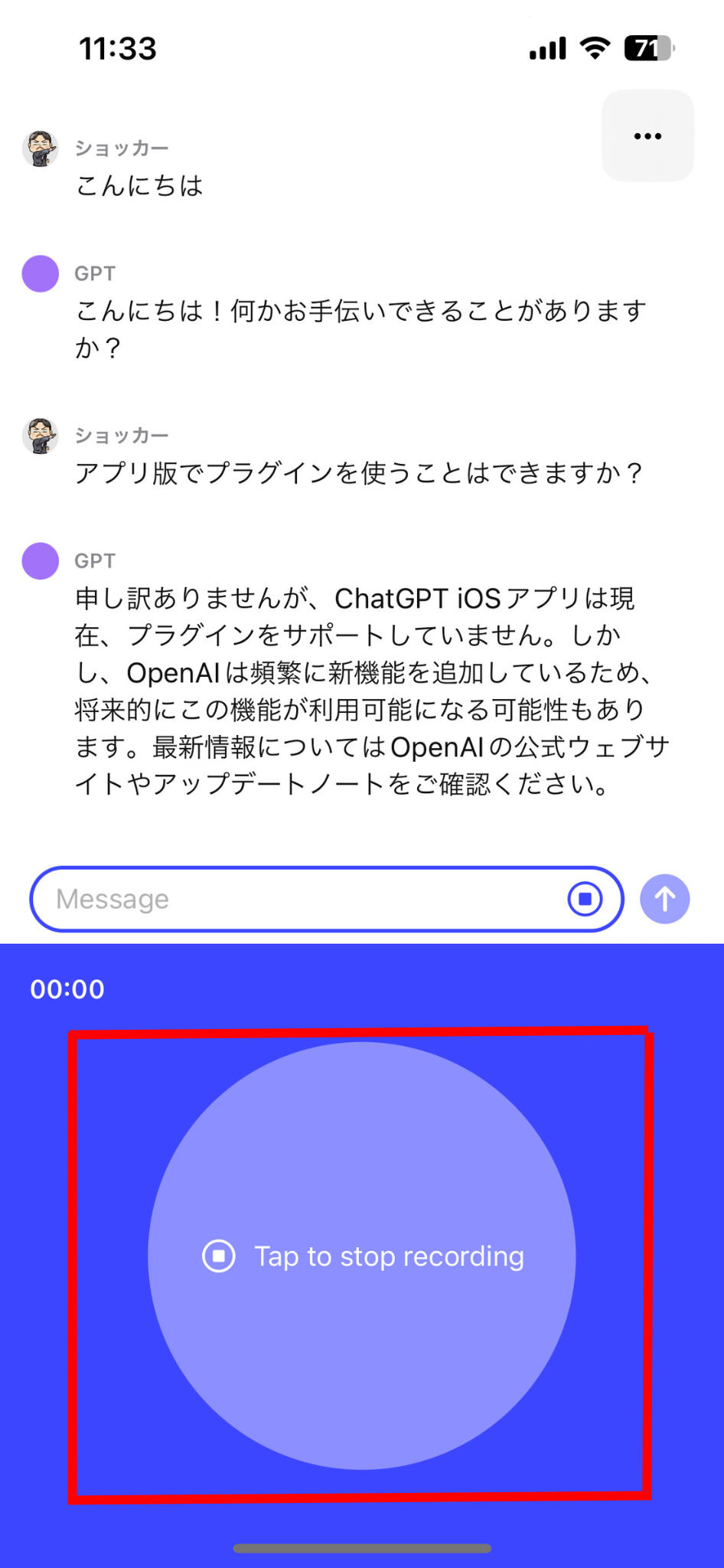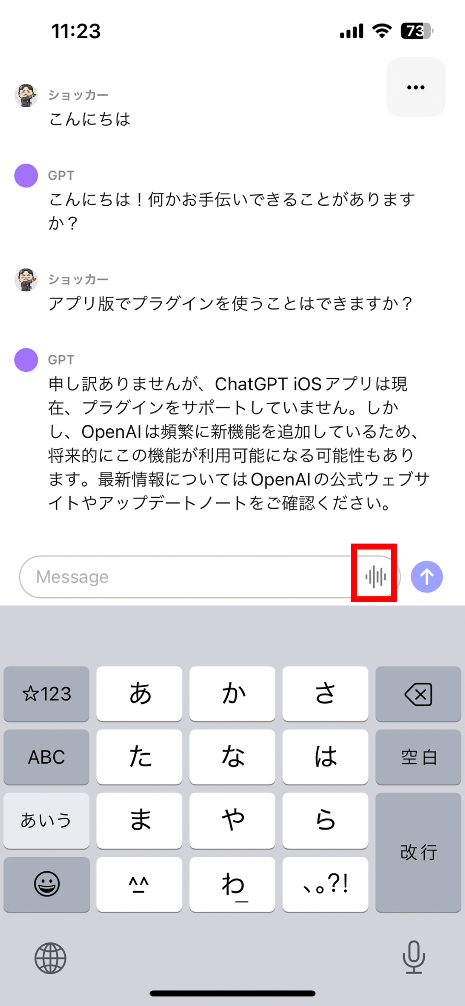 メッセージを送ると画像のようにChatGPTが返信をしてくれる! - 音声入力のやり方