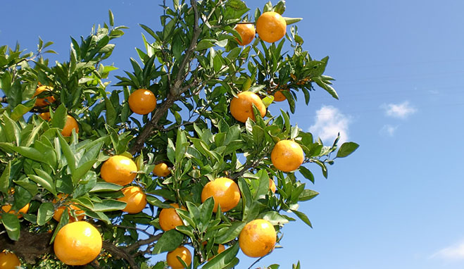 「紅まどんな」の唯一の生産地、「柑橘王国」愛媛県は四国地方の北西に位置し、瀬戸内海とサンゴが見える宇和海に面しています。多々羅大橋、岡村大橋で瀬戸内海を挟んだ広島県と接続しているため文化的・経済的の結びつきも強いです。