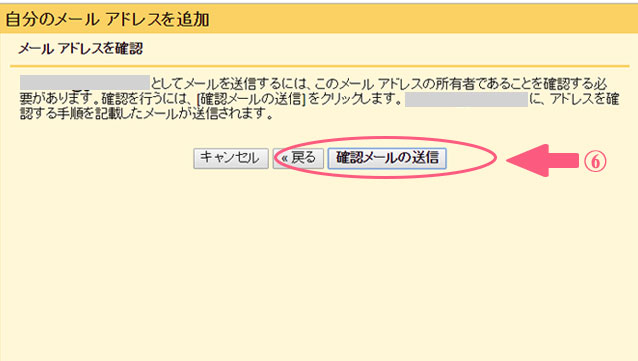 ⑥自分のメールアドレスであることを確認する必要があるので、「確認メールをを送信」をクリック。