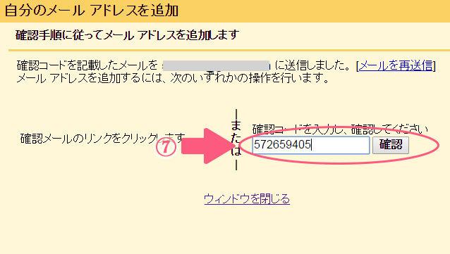 ⑦そのメール本文にあるリンクをクリックするか、送られてきた確認コードを入力することで完了です。