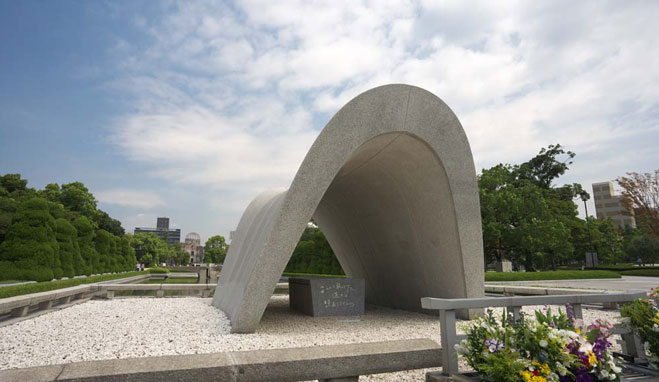 2つ目は、原爆ドームですが、この建物は被爆前は特産物の展示などを行う広島産業奨励館として使用されていました。しかし、1945年の8月6日に被爆し、多くの犠牲者を出し、爆風と熱線を浴びた建物は大破しました。戦後、原爆ドームと市民から呼ばれるようになり、保存を求める声がたくさんあったため、1967年度に初めて保存工事が行われました。現在、平和記念公園や原爆ドームには世界平和を願う人々が世界中から訪れ、春には桜の景色を見ることができます。