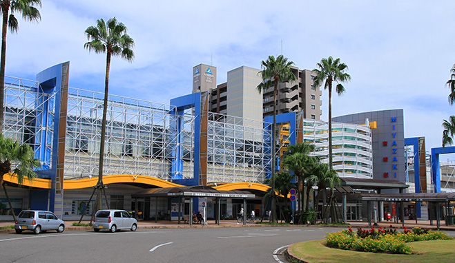 南部の海岸地帯に宮崎空港があり、JR宮崎空港線が接続されたため利便性が高く、イベント会場としても利用され年間各種イベントが開催されています。空港線の他に、JRの日豊本線、日南線、吉都線、肥薩線の5路線が県内を走っています。空港線と日豊本線の接続駅で乗客数が最も多い宮崎駅の周辺には学校、官公庁、公共施設が多く見られ、ホテル、イオンモール宮崎などの商業施設もあります。