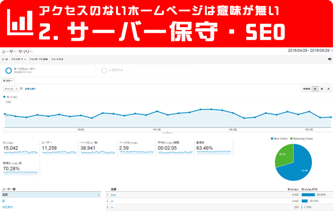 「弊社でホームページに関するすべての管理を代わりに行い運用します。そしてさらにアクセスも保証します。」