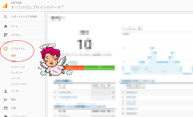 さらに、リアルタイム→コンテンツを選択すると、今現在どのページが見られているかを確認できます。