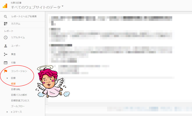 画面左のナビ列からコンバージョン→目標→概要を選択