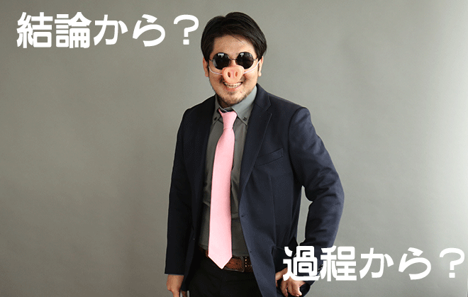 最近は「結論はこうなりました。話の流れは・・・」という風に先に結論から話すように気をつけています。