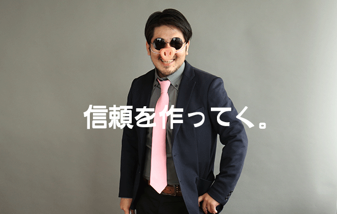 というと、なんか固く感じますが、「この人信頼できるなあ」って思われるように日々過ごすってことですね。